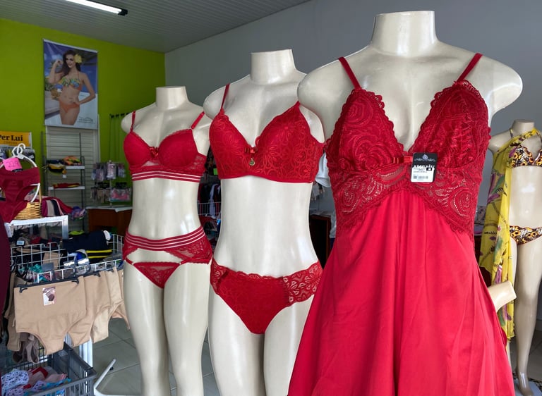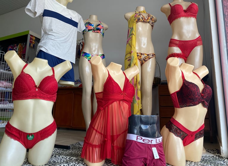 A loja também oferece modelos de lingerie que combinam beleza e conforto, ideais para quem busca peças especiais ou deseja renovar o guarda-roupa íntimo.